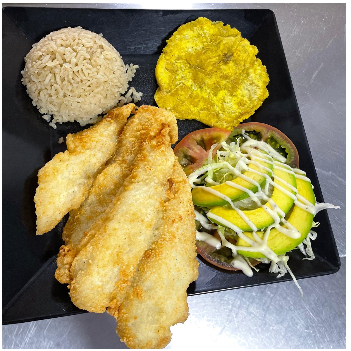 Preparados al momento, con ingredientes frescos del mar, sabores tradicionales y el toque especial de la casa. Acompañado con ensalada y patacón.
